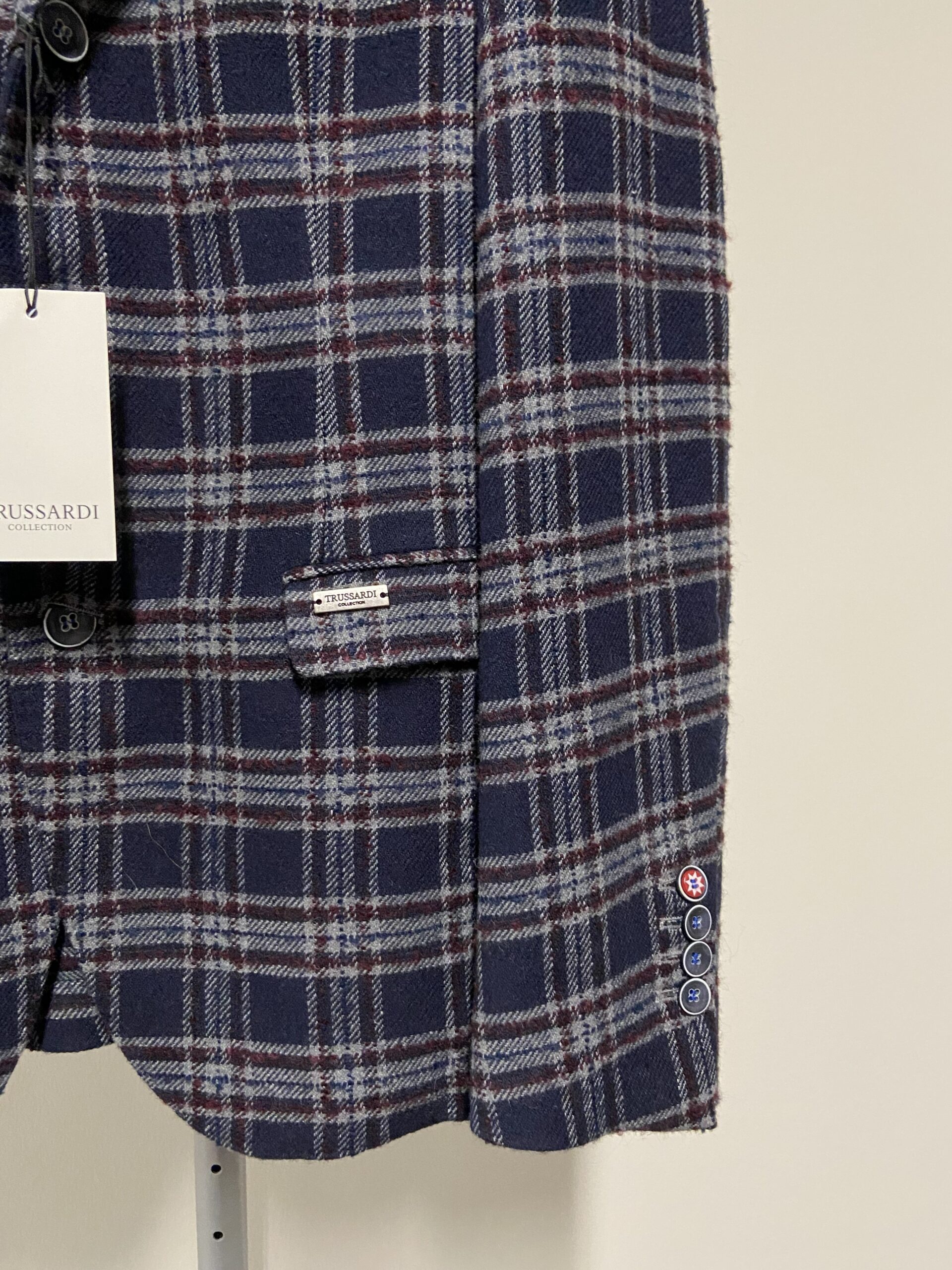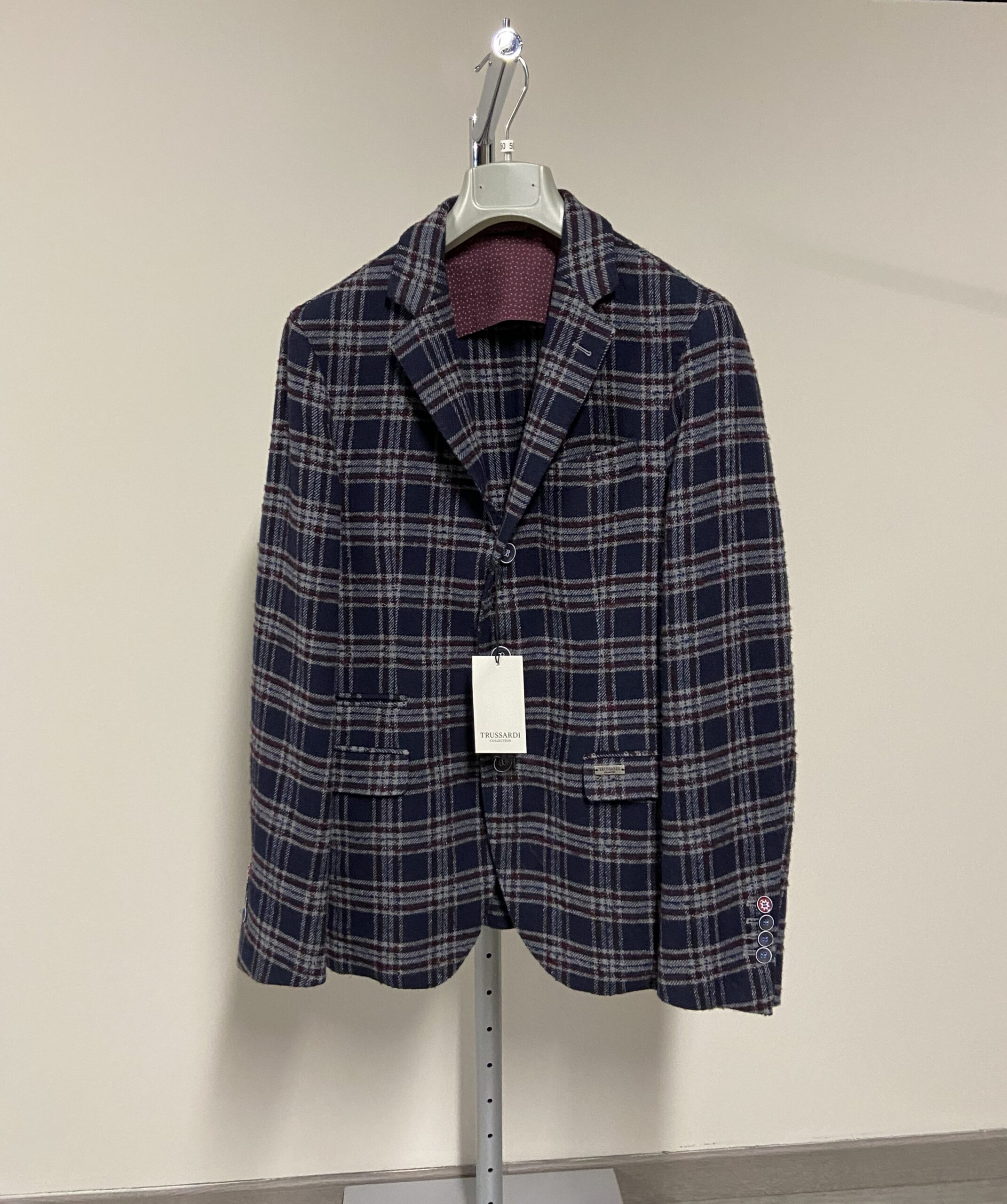Blazer monopetto da uomo del marchio Trussardi con vestibilità slim fit.