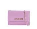 Compattezza strutturata e stile iconico: il portafoglio Love Moschino in similpelle lilla con logo dorato definisce l’eleganza quotidiana.