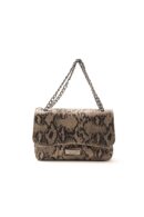 Borsa a tracolla strutturata in pregiata pelle di vitello con audace stampa pitone, dotata di elegante tracolla a catena in metallo e chiusura a patta.