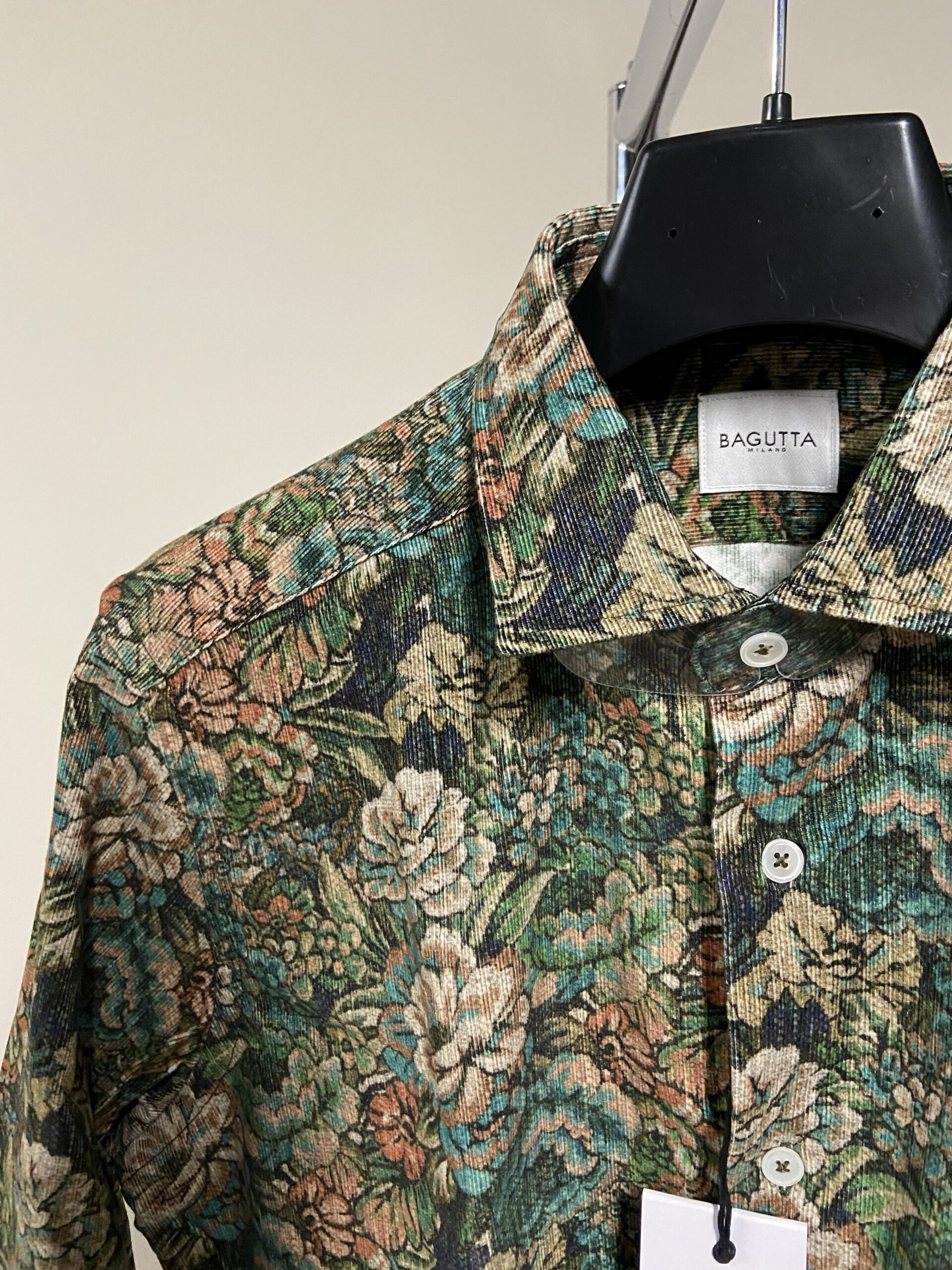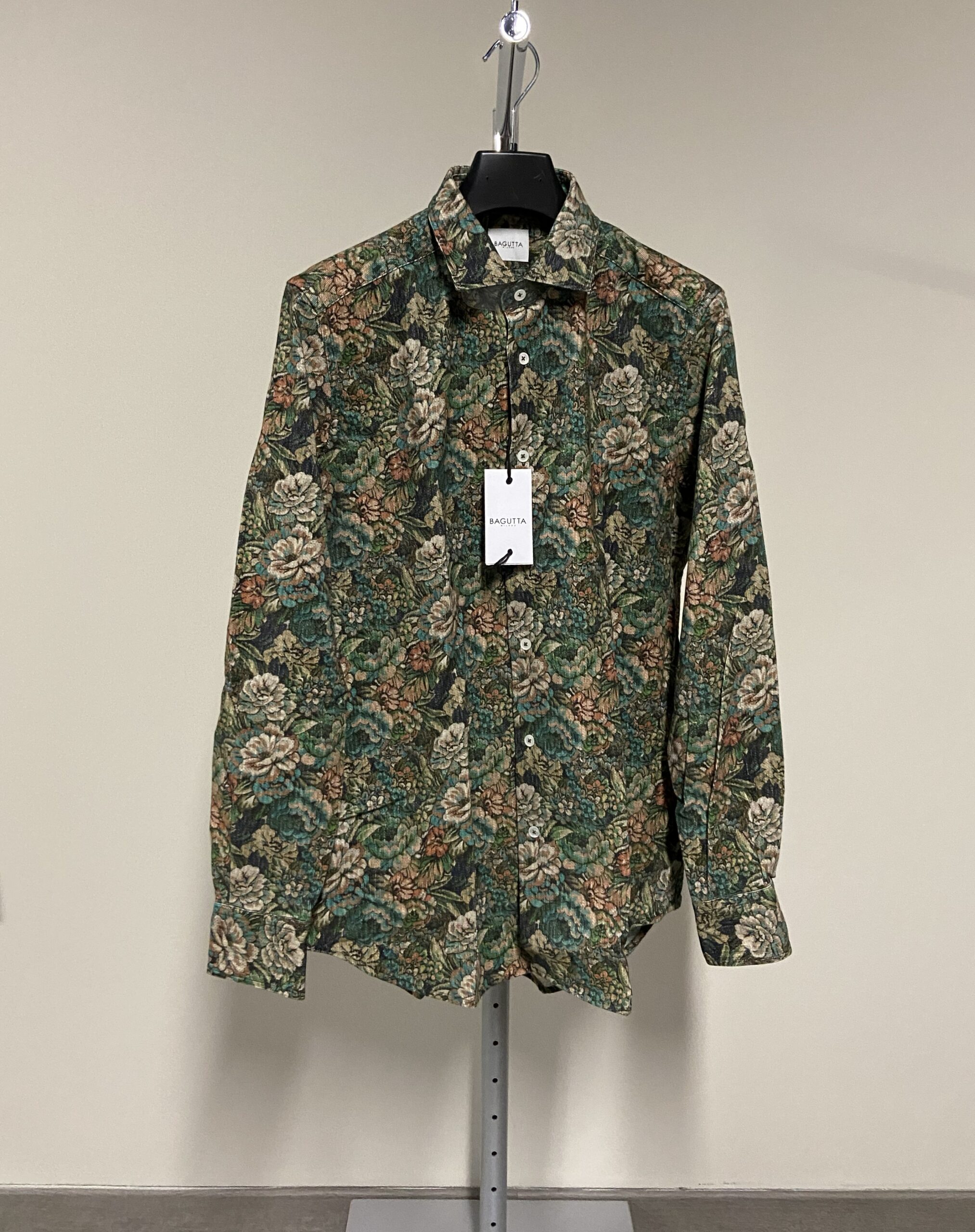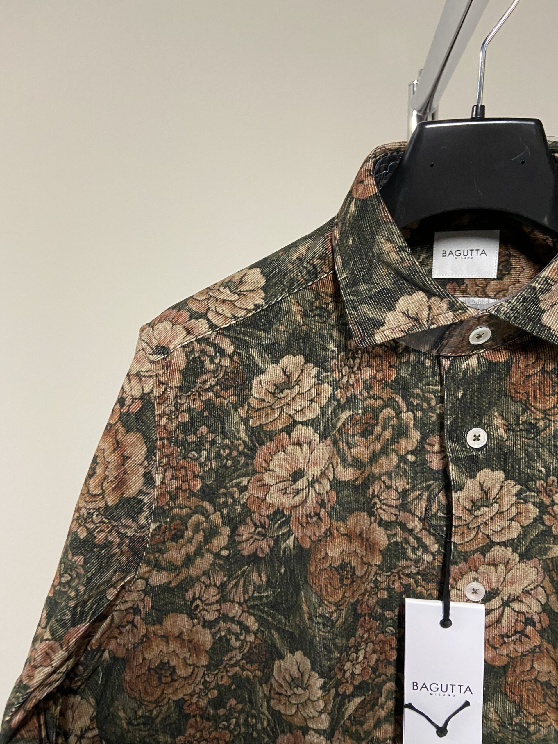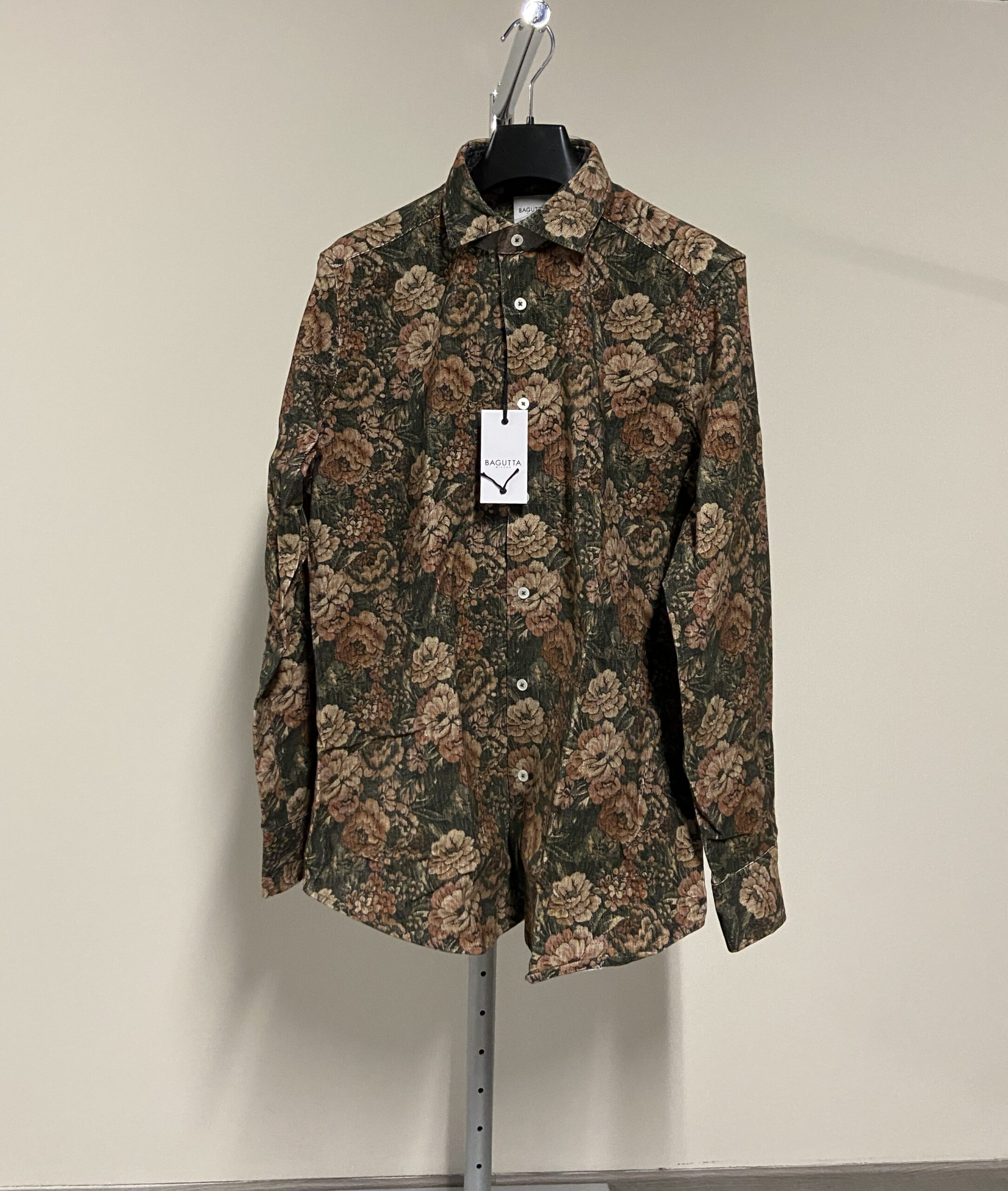 - Dettagli: Presenta classico colletto italiano; bottoni in madreperla; fantasia floreale dai toni autunnali