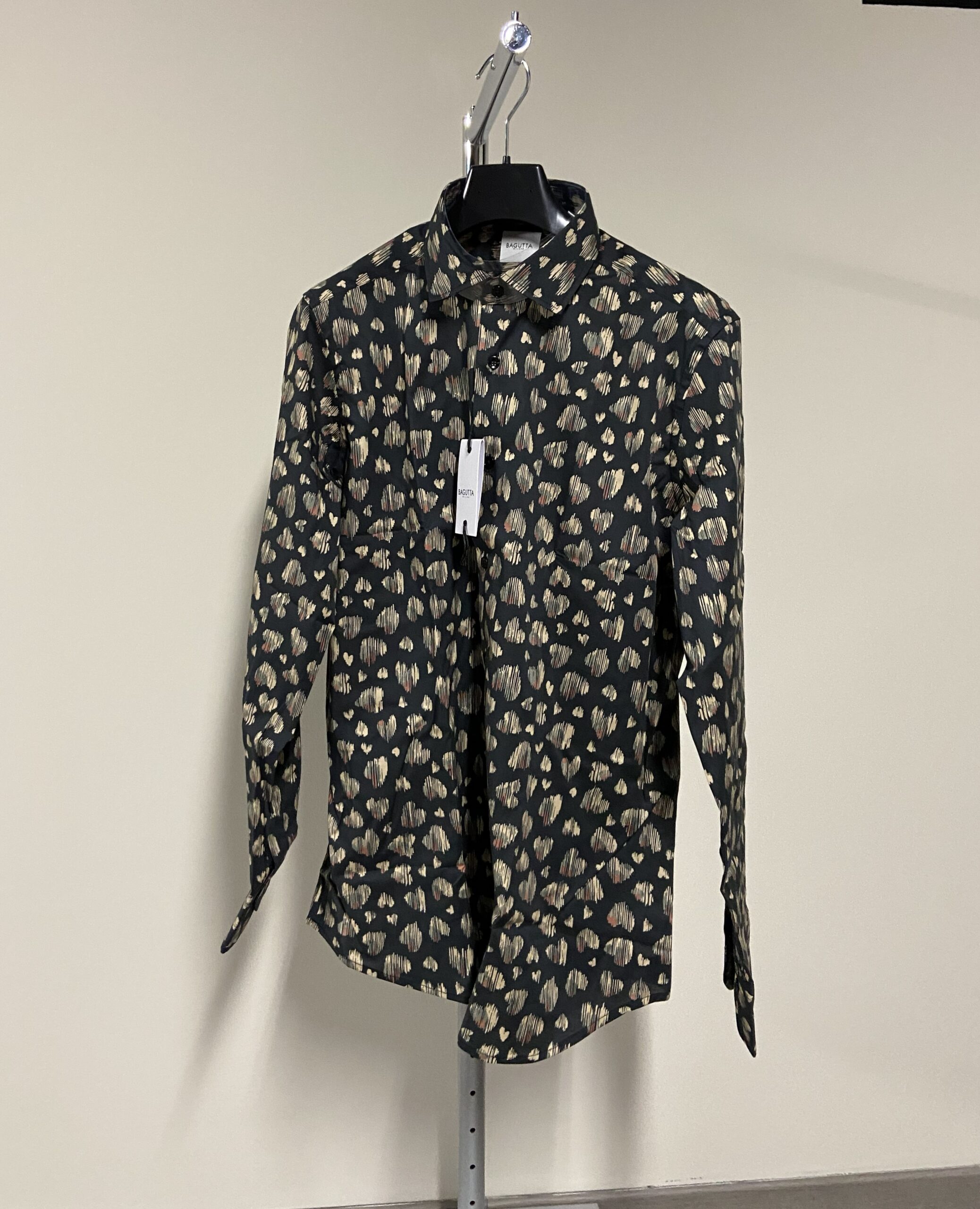 - Dettagli: Presenta classico colletto italiano; bottoni in madreperla; fantasia a cuori.