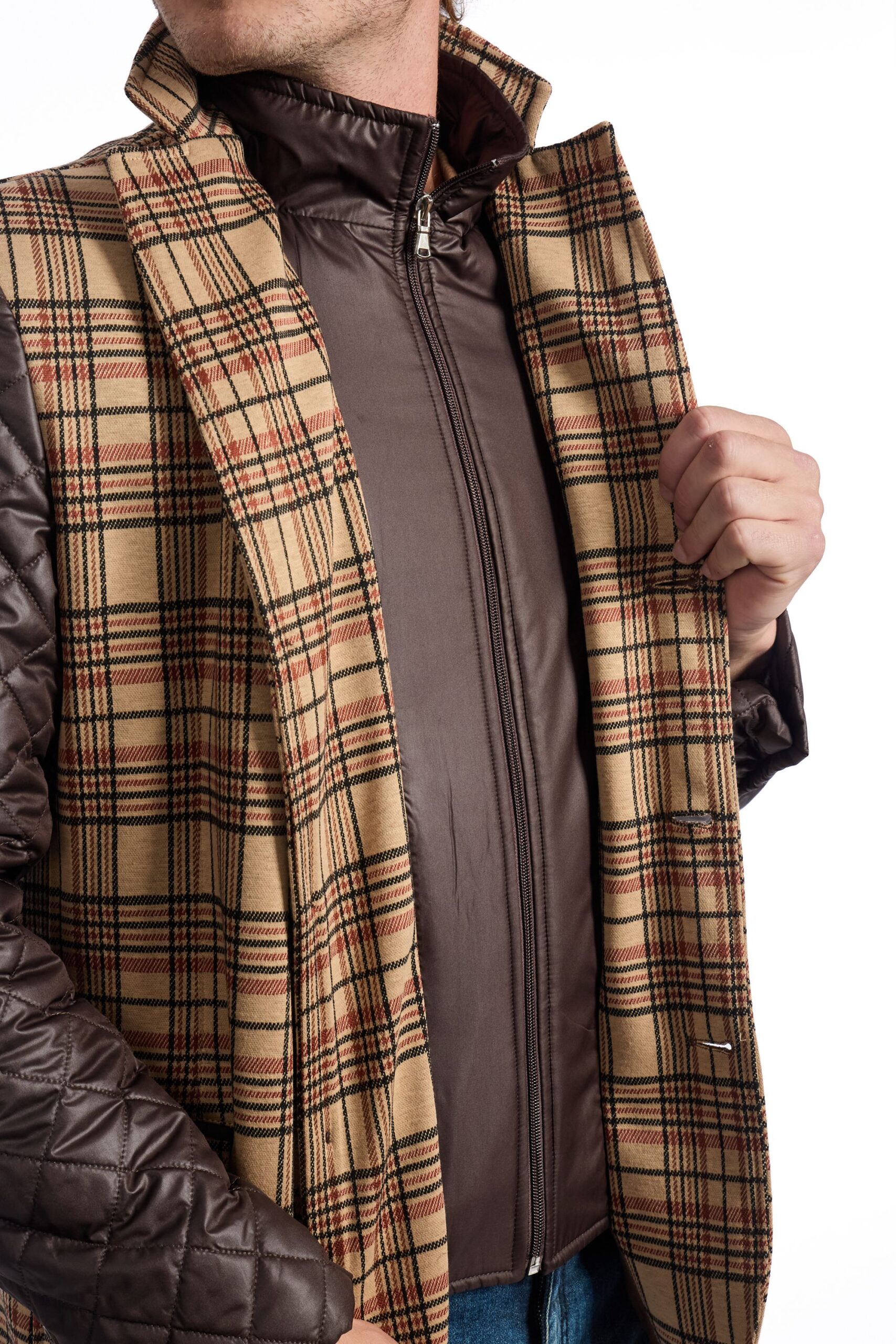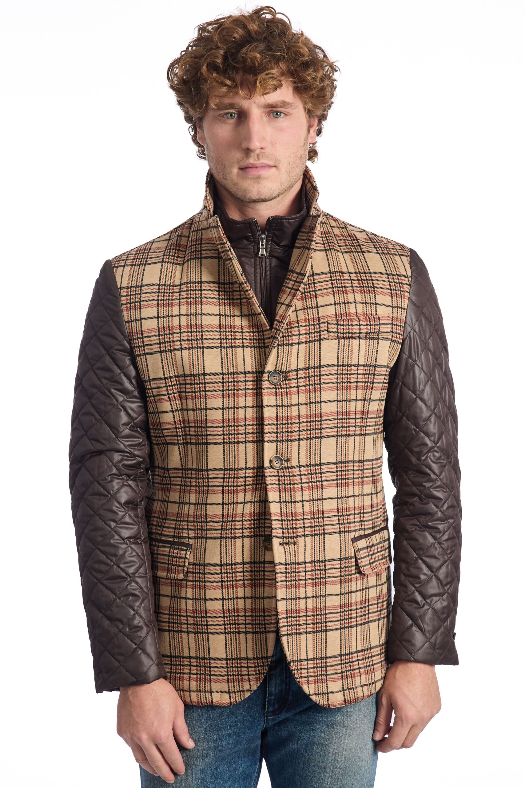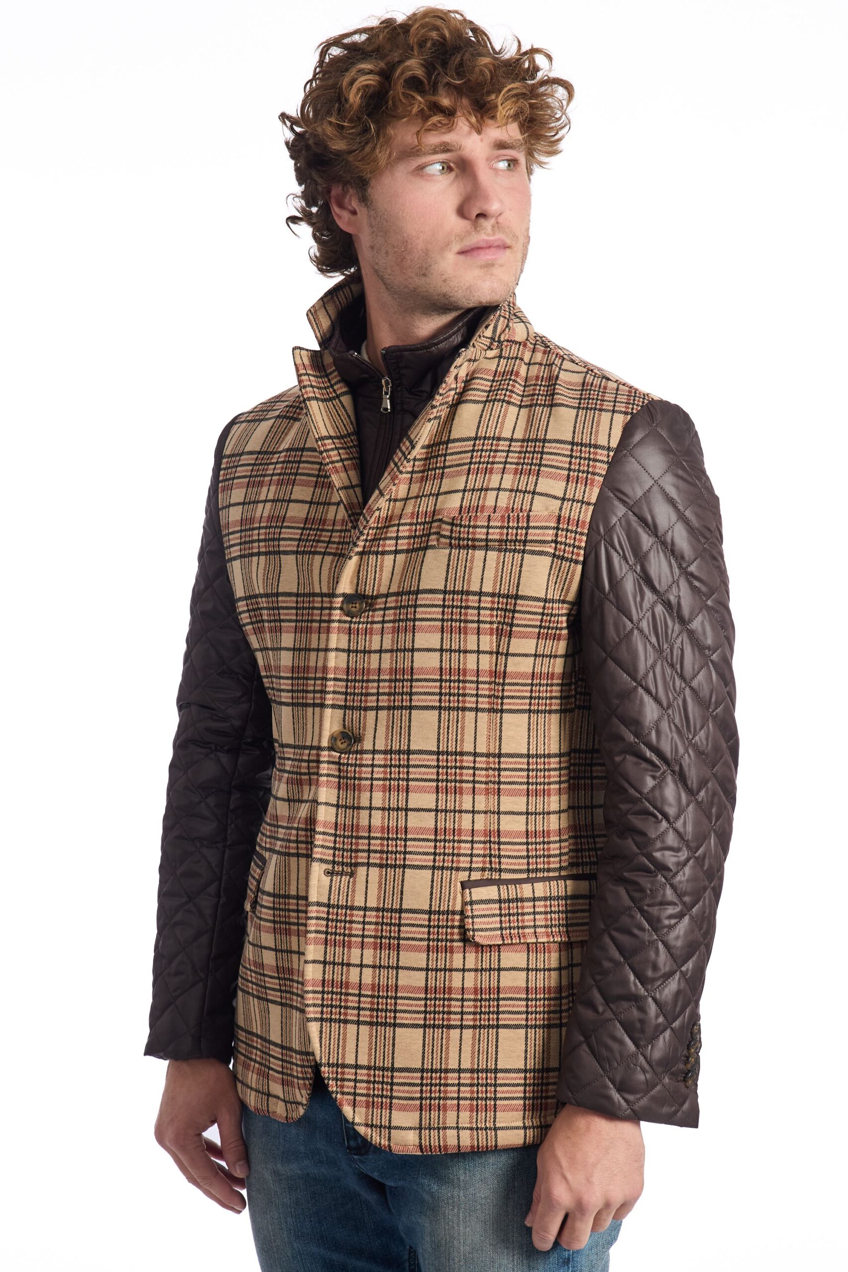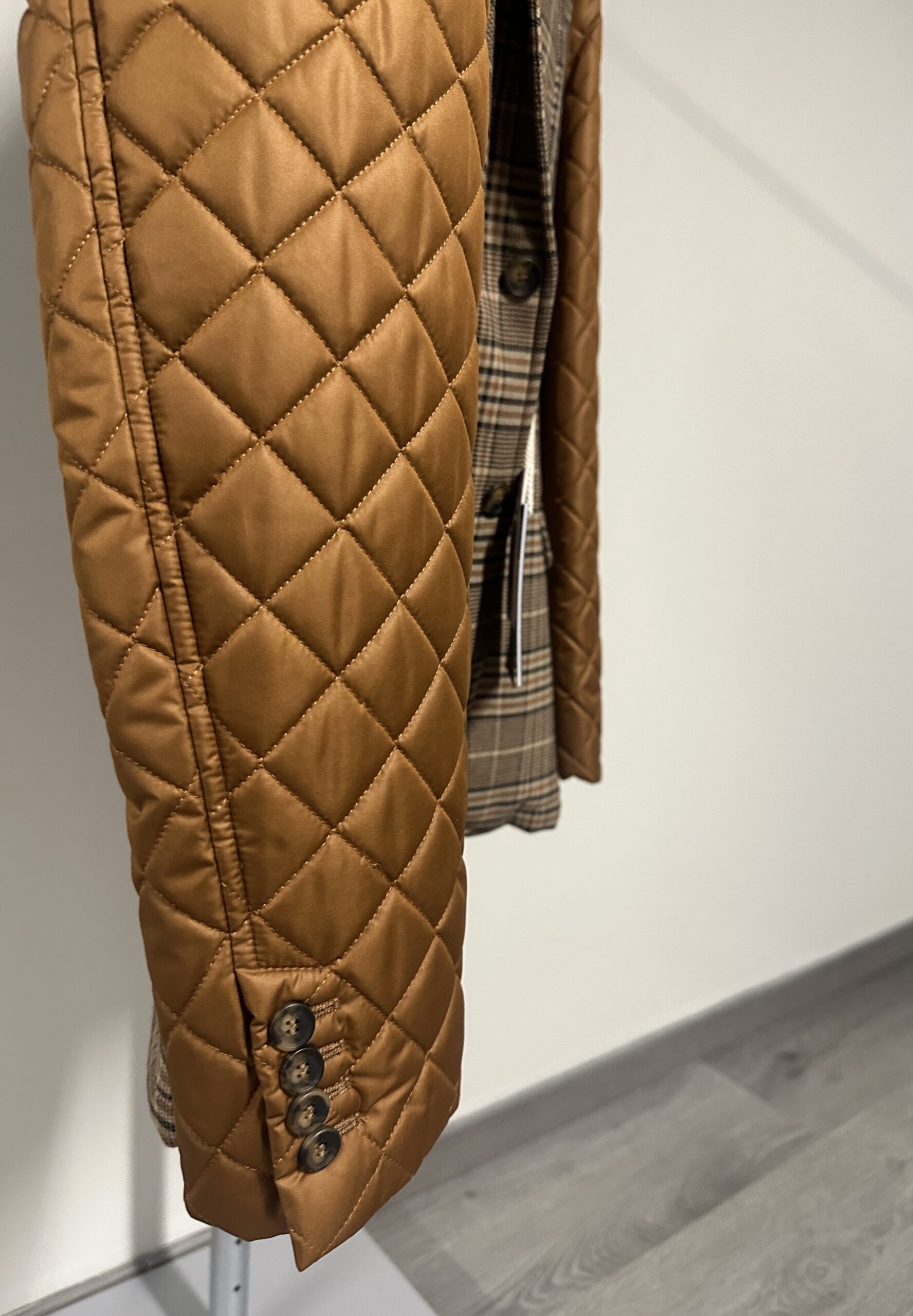 Il corpo centrale presenta un motivo a quadri Principe di Galles. Le maniche lunghe sono realizzate in un materiale sintetico trapuntato.