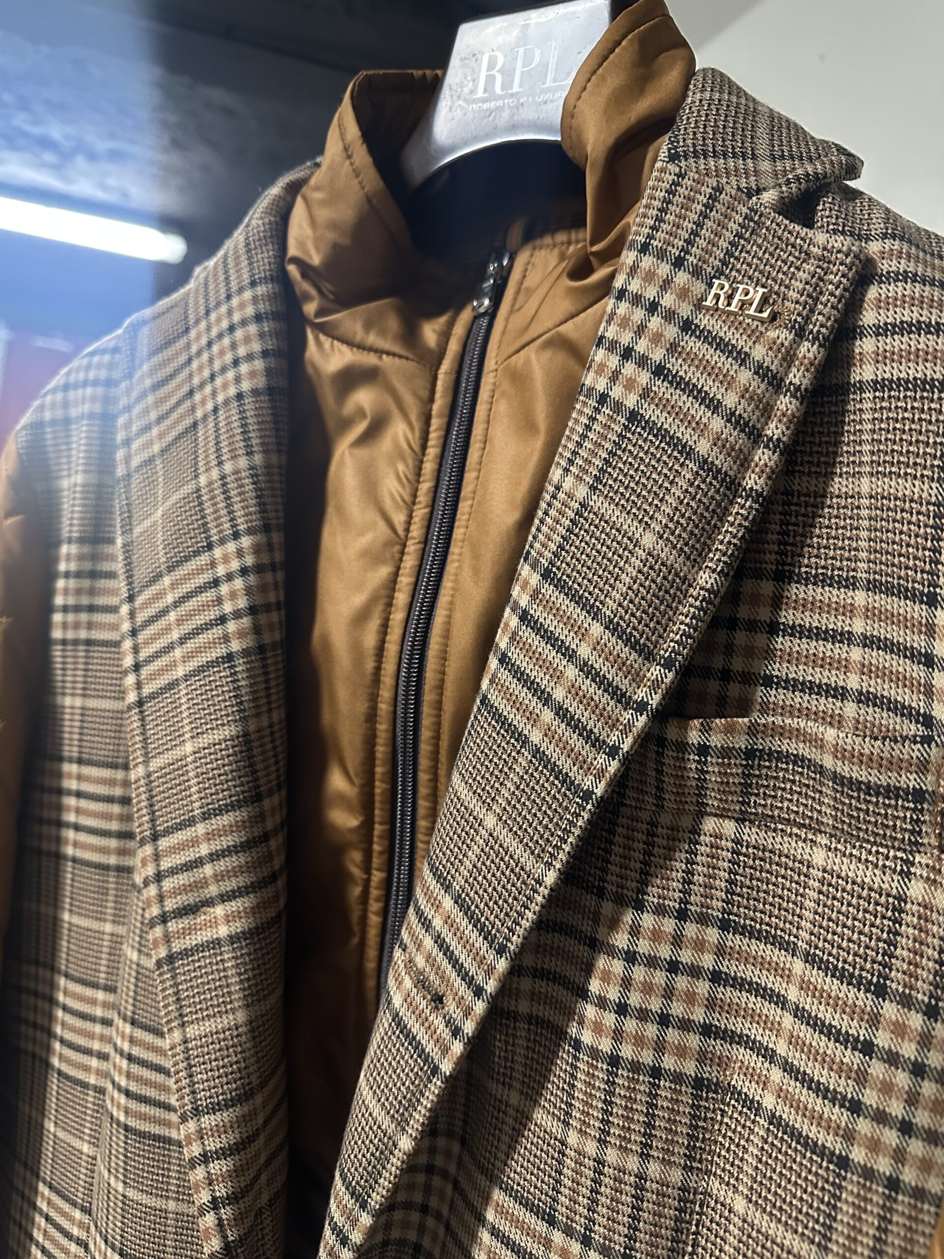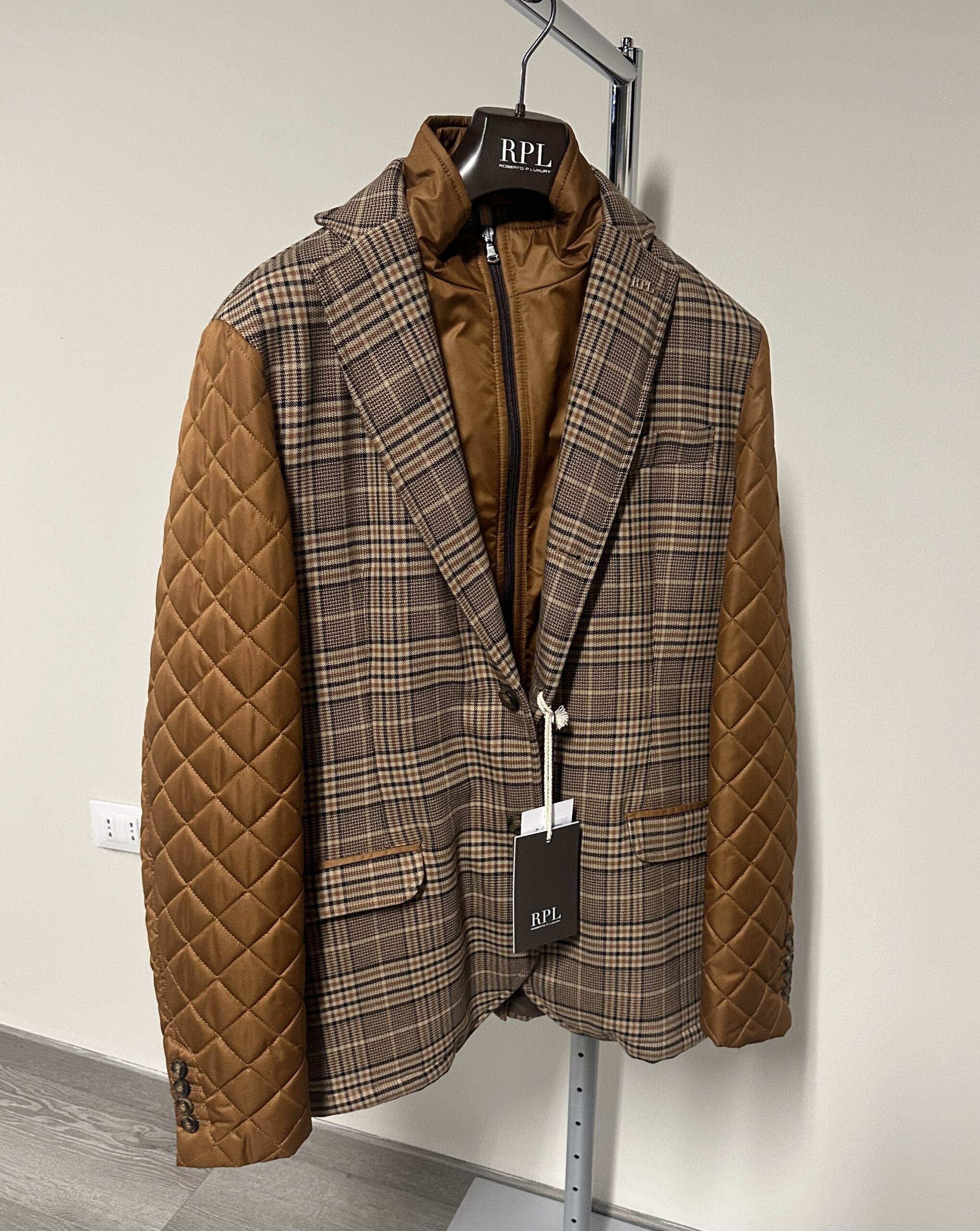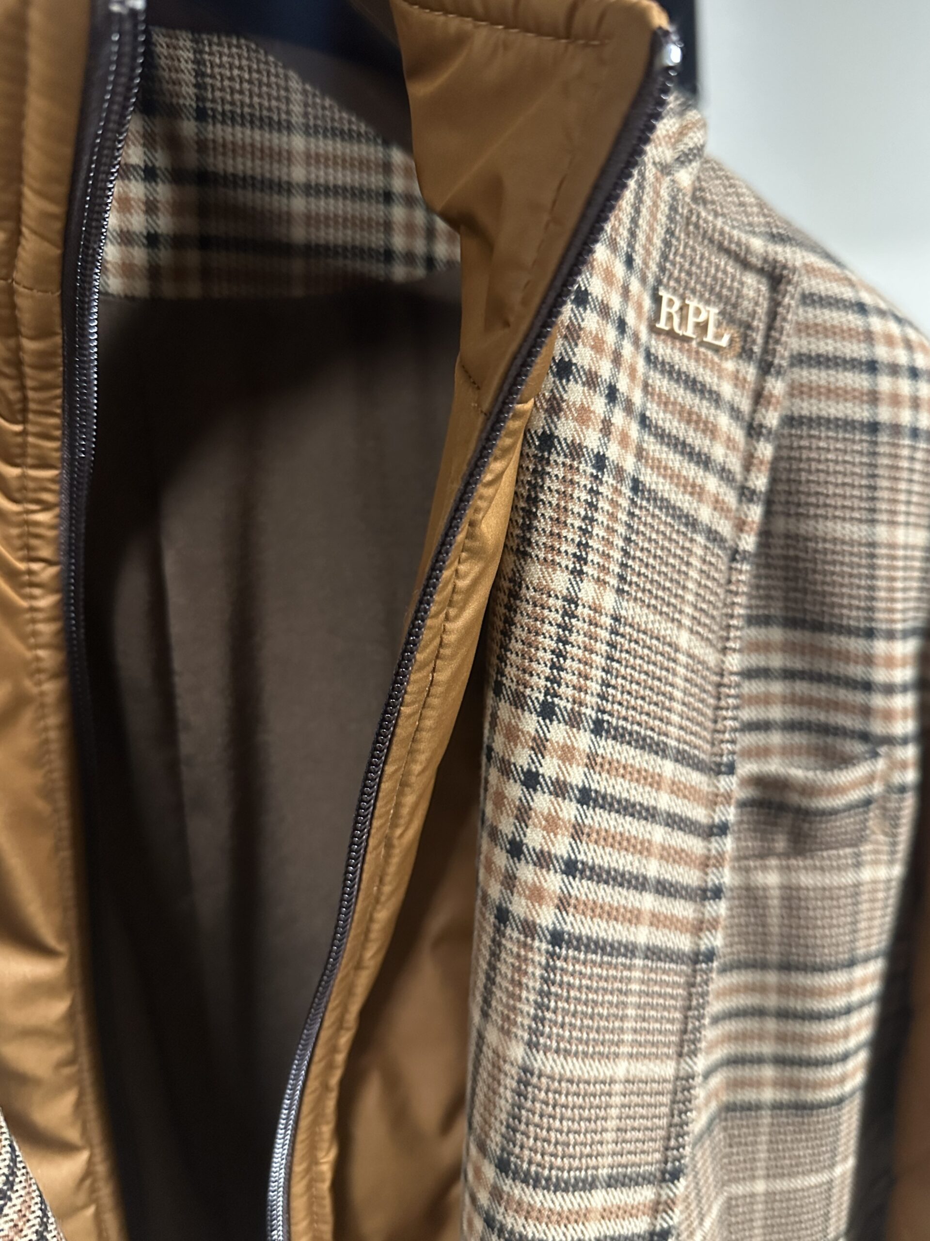Giacca RPL beige e marrone scuro/ beige e ocra.