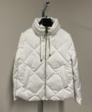 Si tratta di un piumino Baldinini da donna di colore bianco a maniche lunghe. Il capo presenta una chiusura con zip frontale e tasche laterali, ed è caratterizzato da un design trapuntato a rombi con un collo alto e avvolgente.