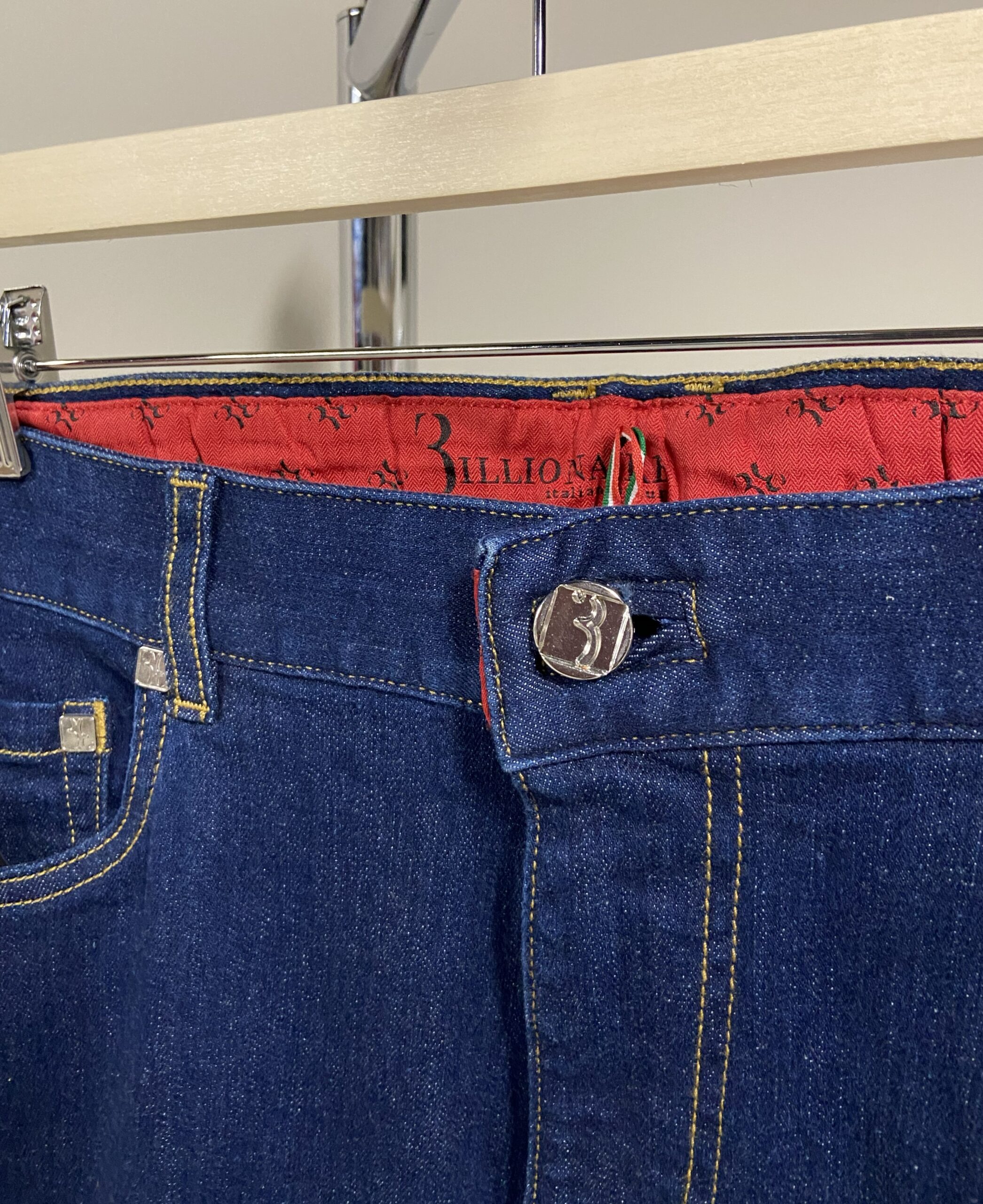 I jeans Billionaire sono un capo di lusso maschile con dettagli distintivi che ne sottolineano l’esclusività.