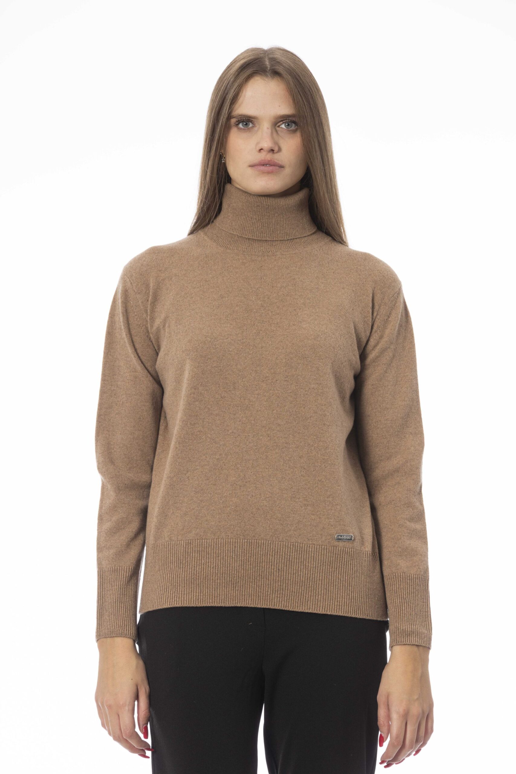 Maglione dolcevita Baldinini manche lunghe, tinta unita con un piccolo logo visibile in basso a sinistra.