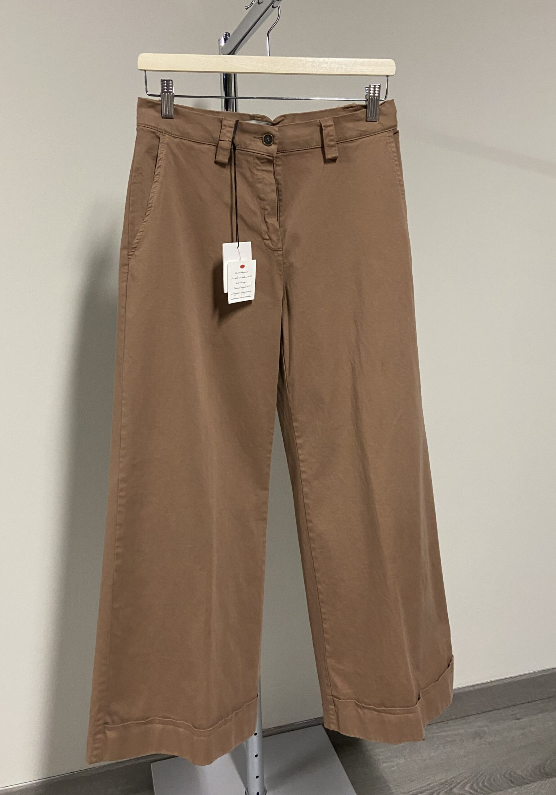 Le culotte Tahiana sono pantaloni a gamba larga (wide leg), in cotone di alta qualità con elastan, e presentano tasche laterali. Sono un modello corto alla caviglia (cropped), con orlo risvoltato e vestibilità rilassata.