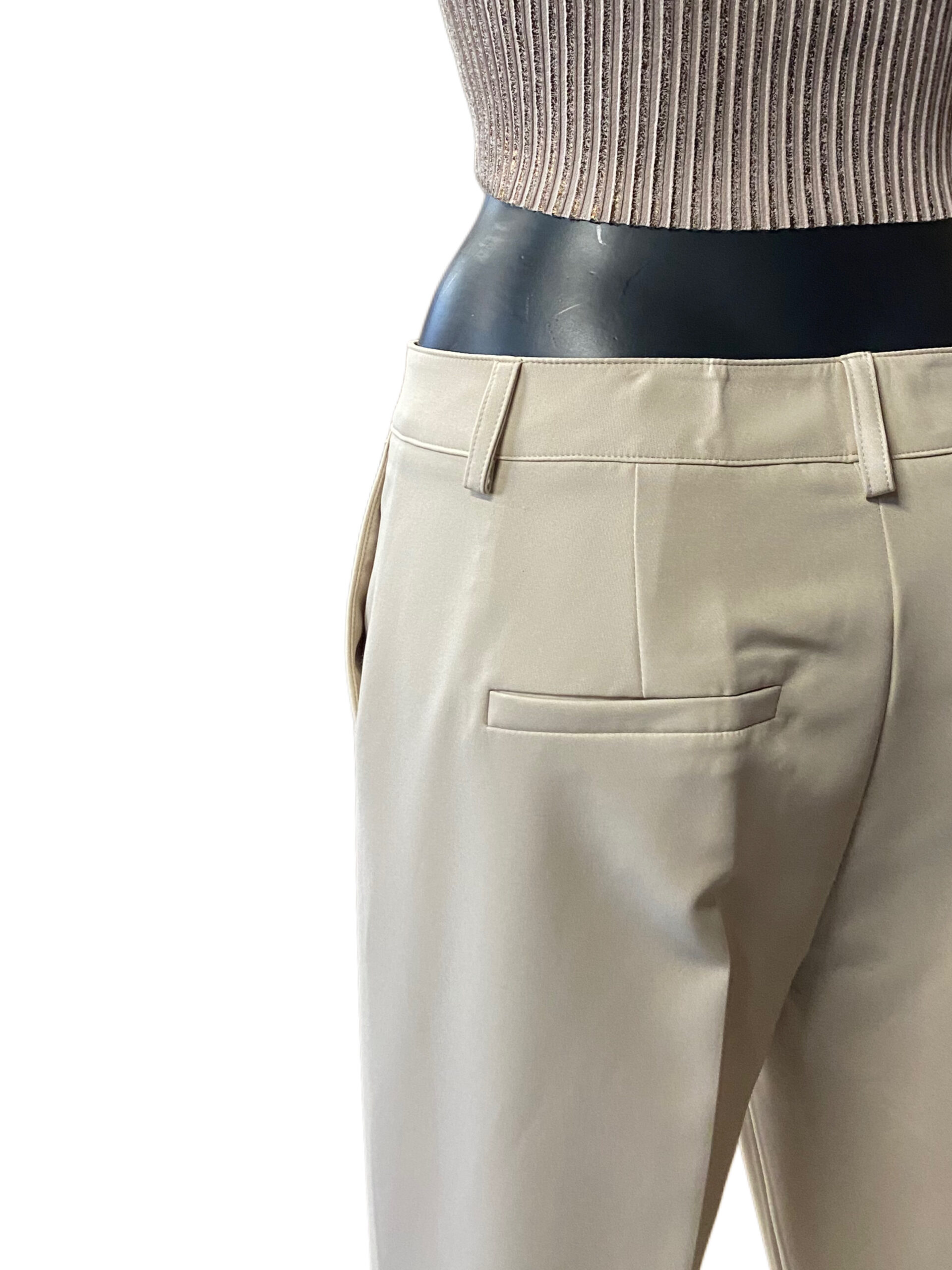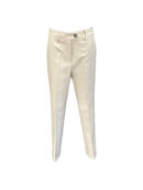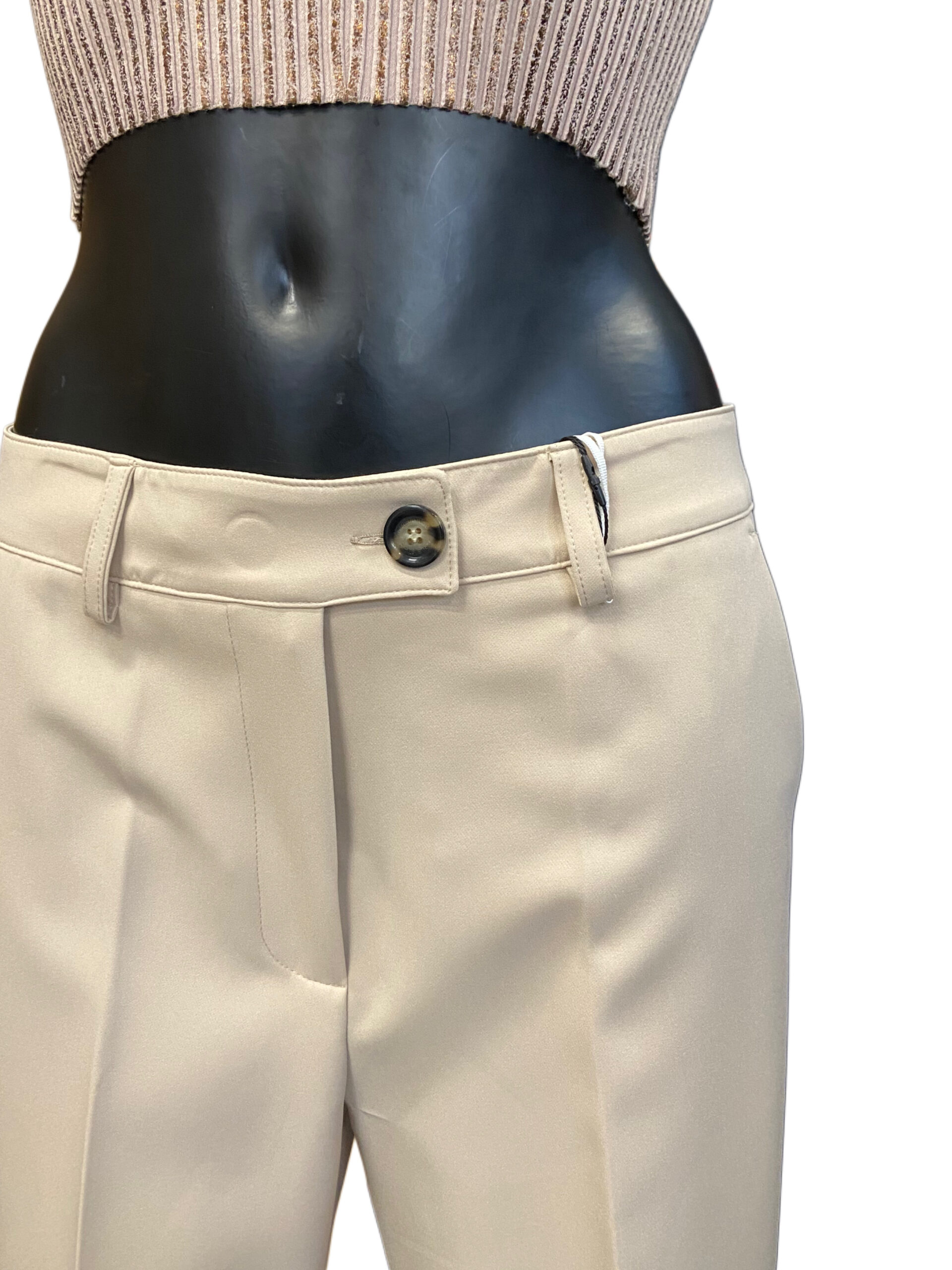 Il modello presenta una silhouette a sigaretta con risvolto alla caviglia e una vita regolare.