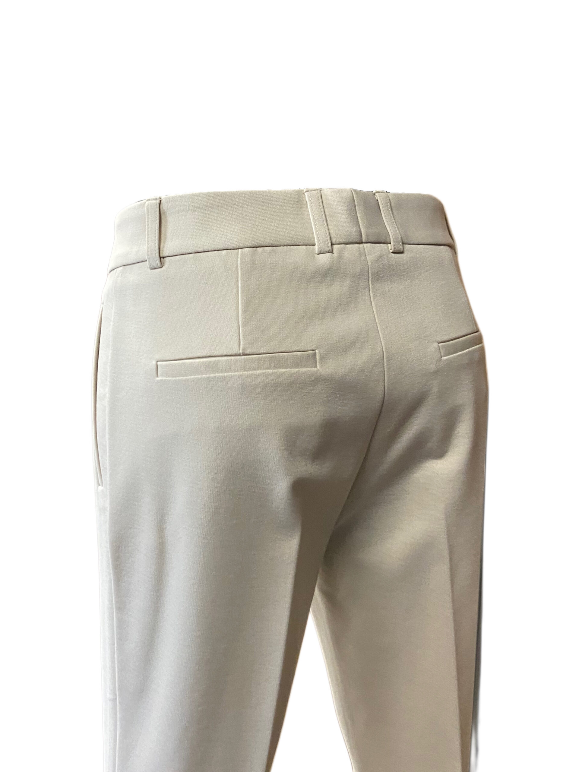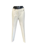 Pantaloni sartoriali da donna di tonalità avorio, offrendo una vestibilità slim e una silhouette slanciata grazie alla gamba dritta. Il design è classico e curato nei dettagli, completo di passanti per cintura, chiusura frontale con zip e bottone e pratiche tasche laterali inserite nelle cuciture. La composizione del tessuto è un blend intelligente e funzionale: il 65% di viscosa, 32% di nylon e 3% elastane.