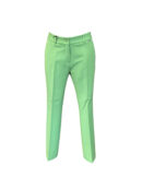 Questi pantaloni sartoriali da donna del marchio Baldinini, caratterizzati da una tonalità verde e una vestibilità slim. Sono realizzati in 77% di poliestere, il 20% di viscosa e il 3% di elastane, una miscela che garantisce comfort e aderenza. I pantaloni presentano dettagli sartoriali classici, come una chiusura con bottone e zip, passanti per la cintura e tasche laterali.