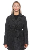 La giacca presenta una silhouette avvitata, definita da una cintura rimovibile nello stesso tessuto in maglia che si allaccia in vita.