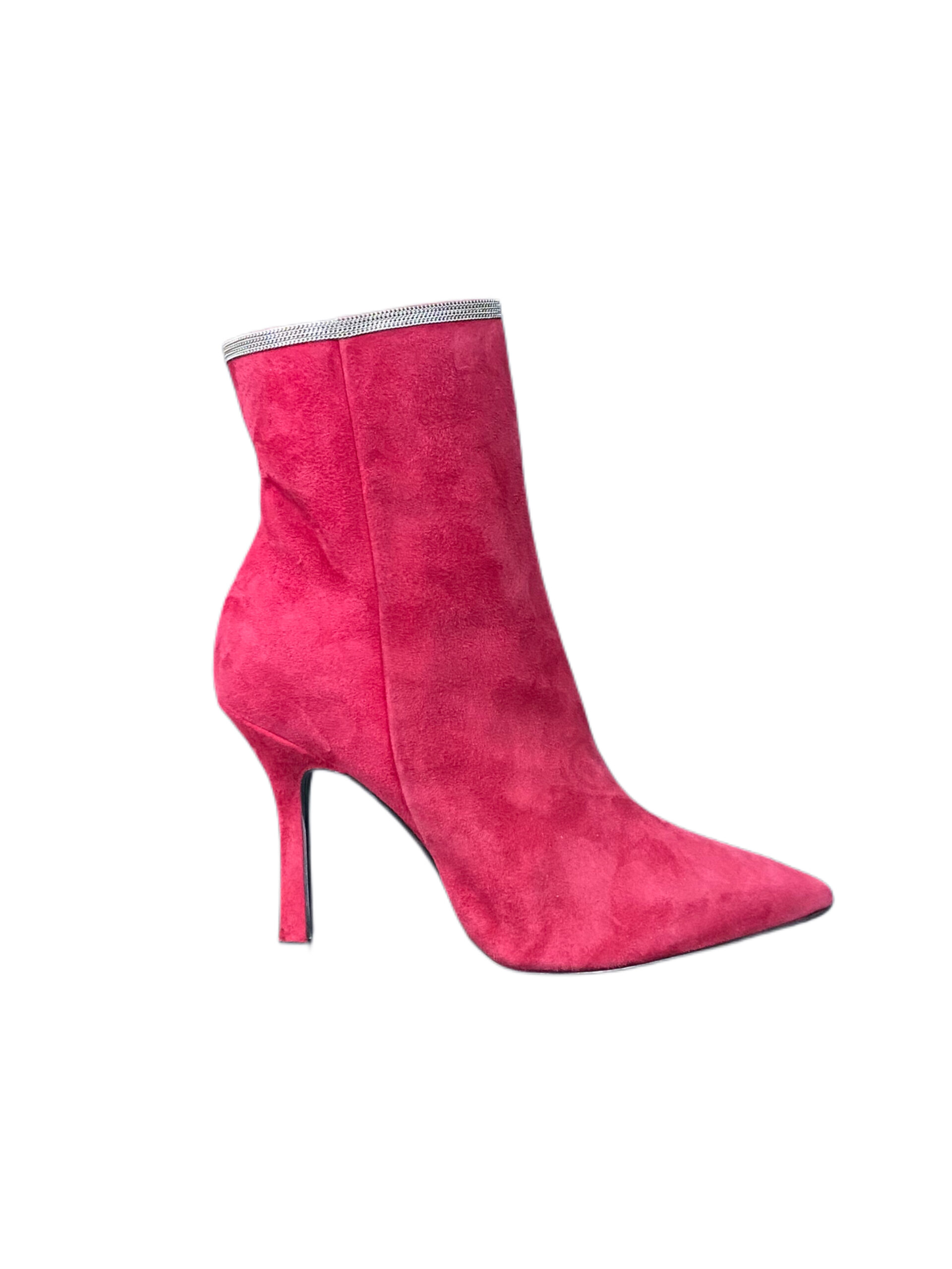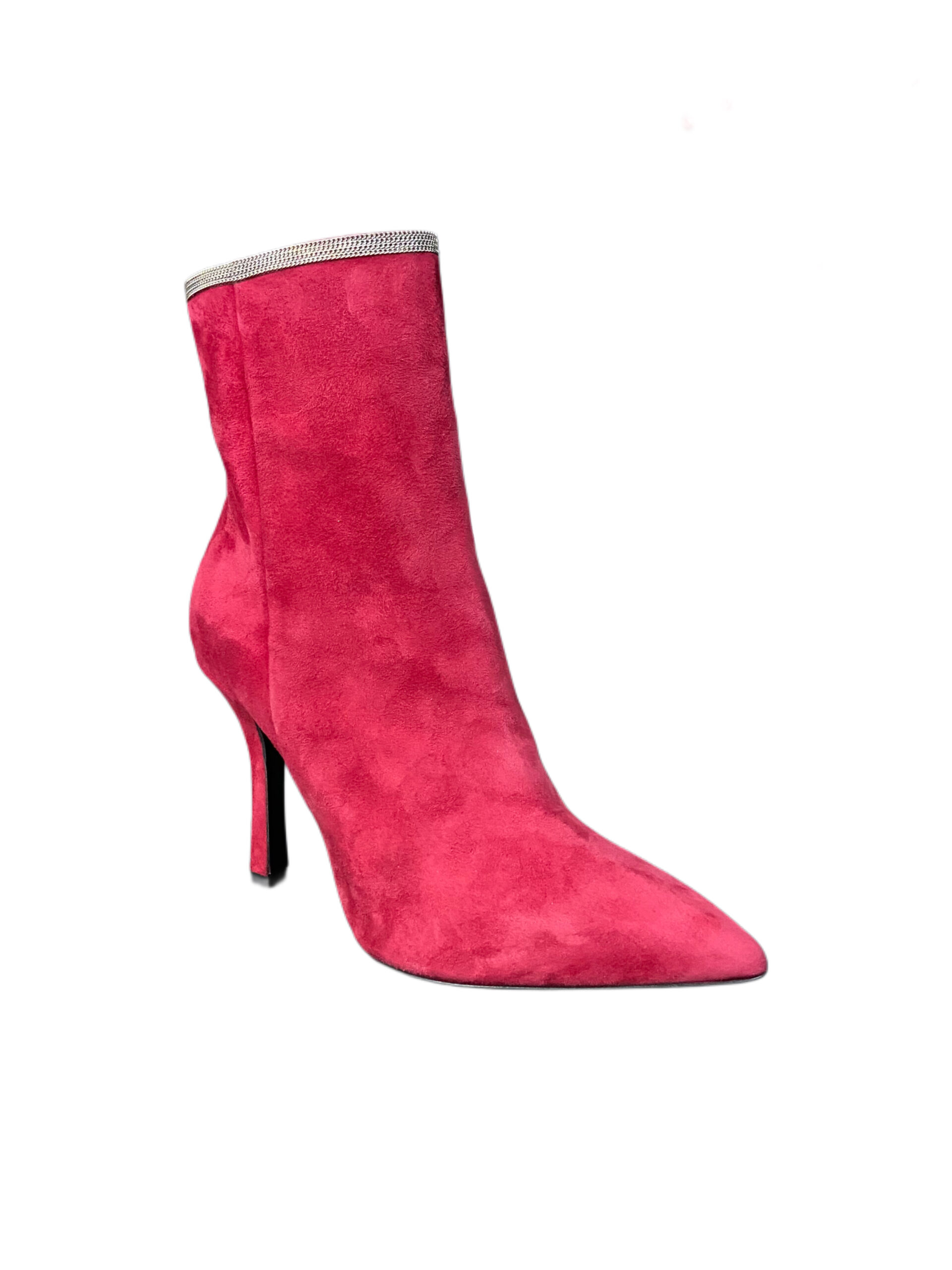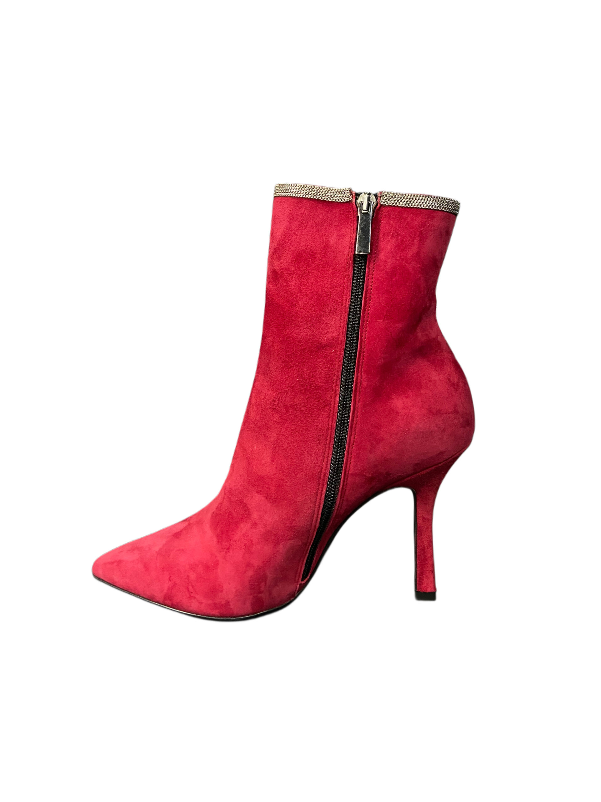Una piccola catena metallica color oro orna l’apertura superiore dello stivaletto.