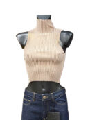 Il capo d’abbigliamento in oggetto è un top da donna a collo alto, caratterizzato da un taglio corto (crop). La vestibilità è aderente (slim fit).