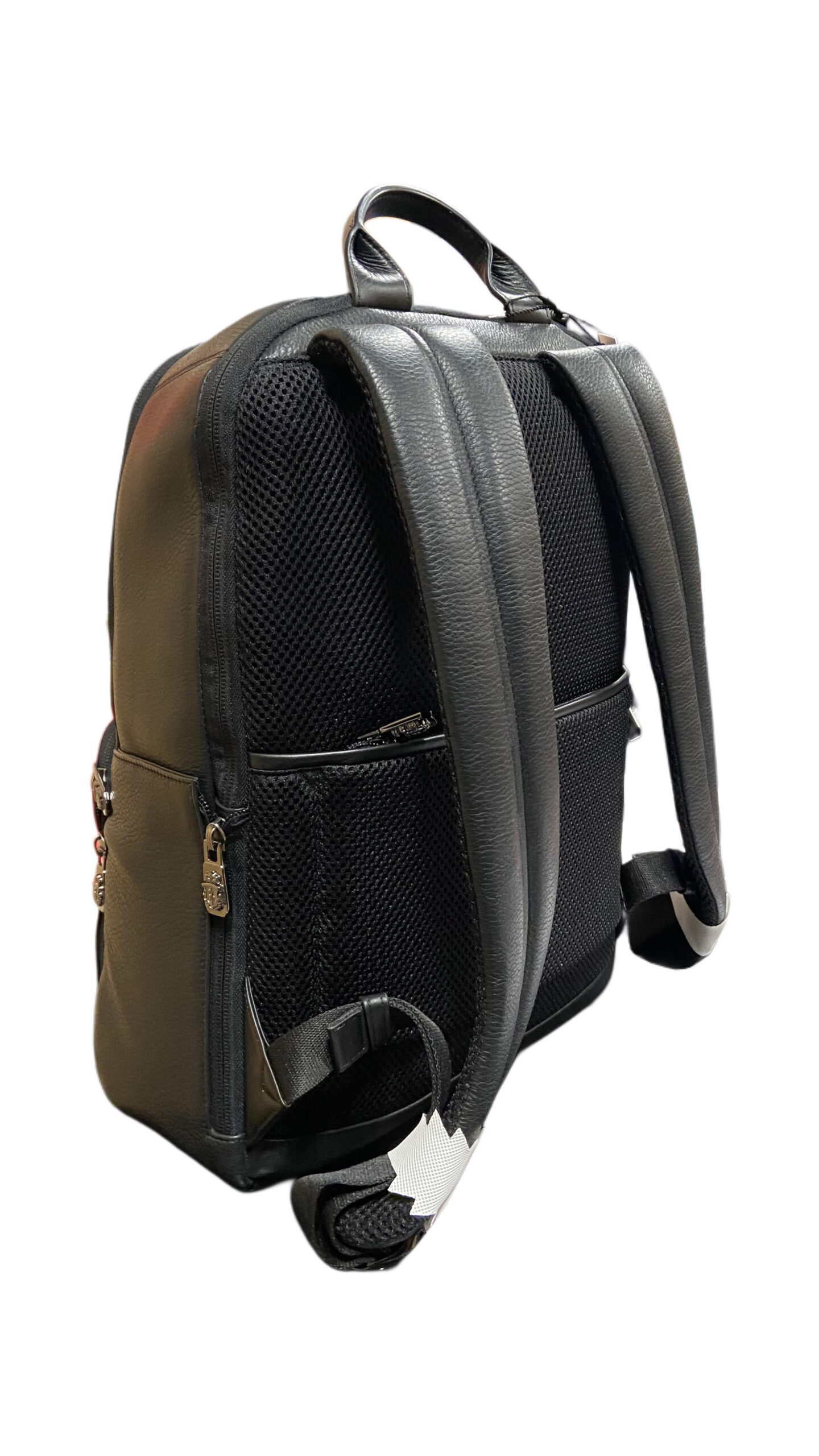 Zaino di medie dimensioni realizzato in 100% pelle a grana fine con una finitura opaca e liscia.